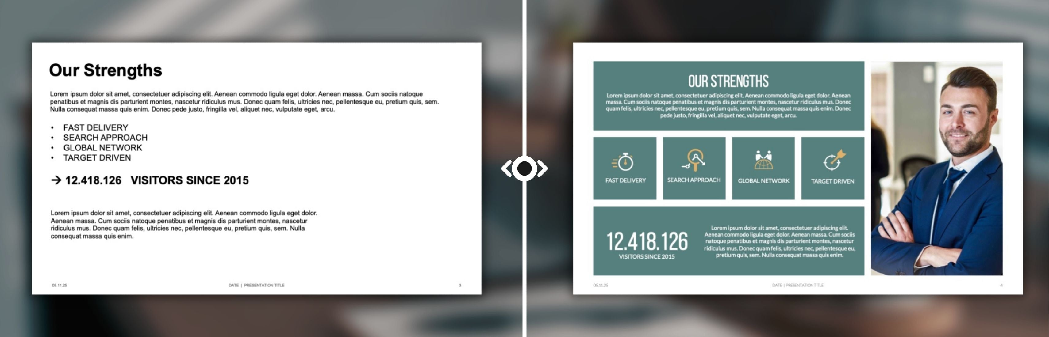 Discover how professional design transforms the way you present. Our PowerPoint and Canva templates turn everyday slides into modern, branded presentations that impress clients, investors, and teams. Each example shows how clear structure and visual storytelling make your message more powerful and memorable.