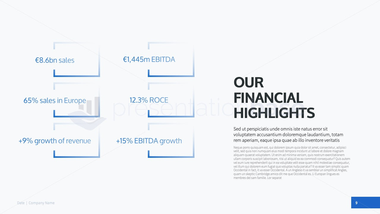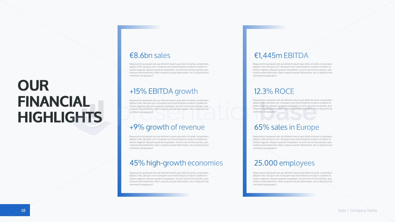 Showcase essential KPIs such as Revenue, EBITDA, Net Profit, ROI, ROE, Cash Flow, Customer Acquisition Cost (CAC), Churn Rate, Conversion Rate, Sales Growth, Market Share, and Operating Margin. Each slide is designed to transform complex data into a simple, professional story your audience will immediately understand.