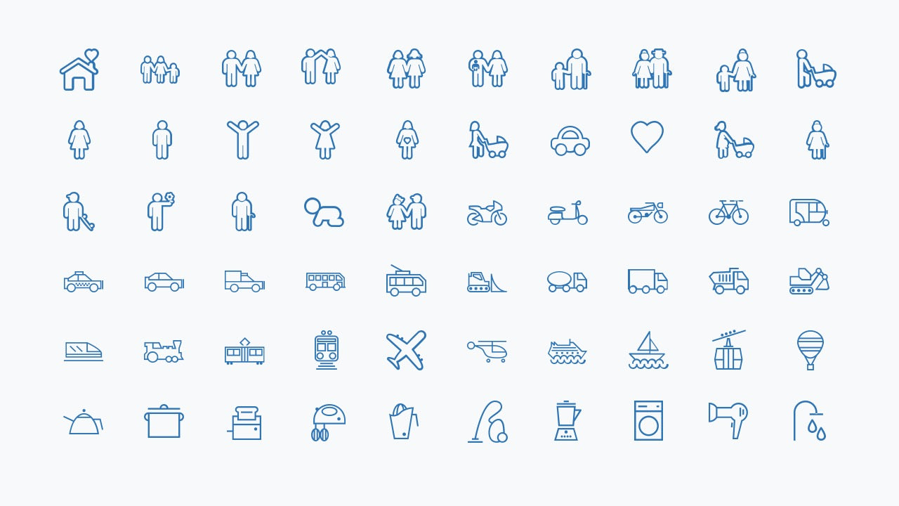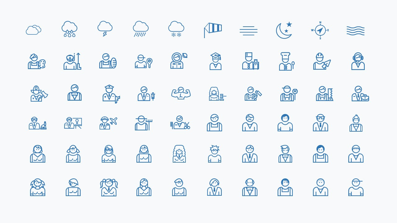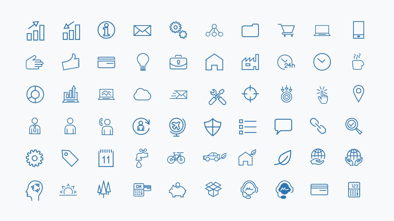 A powerful collection of solid and line icons for PowerPoint – designed to cover every standard topic from business and tech to lifestyle, weather, medicine, transport and more.