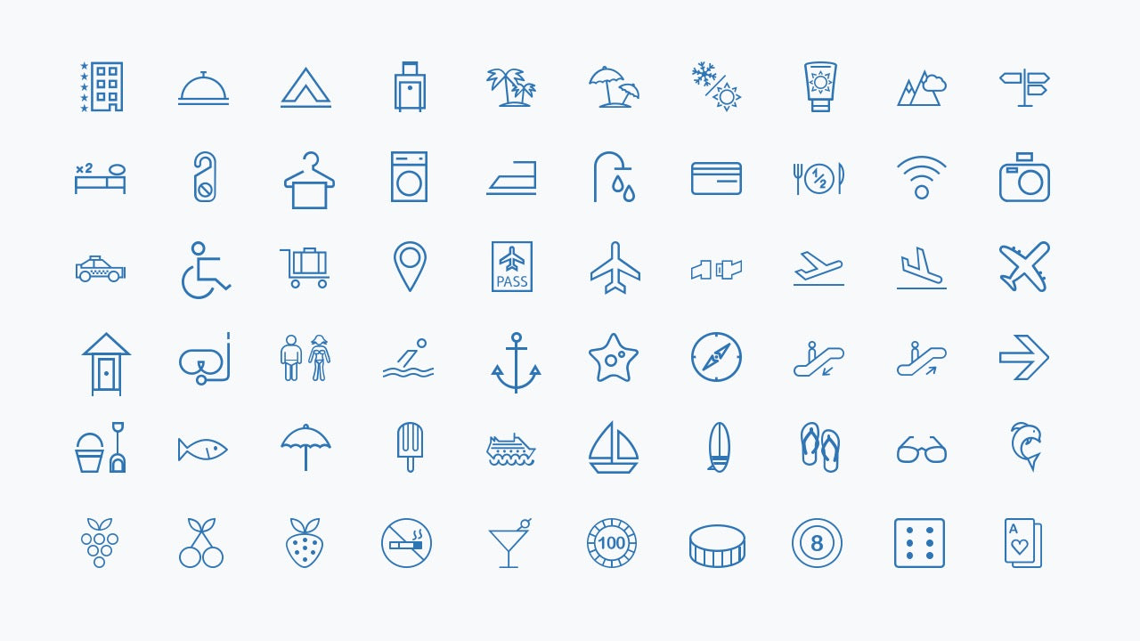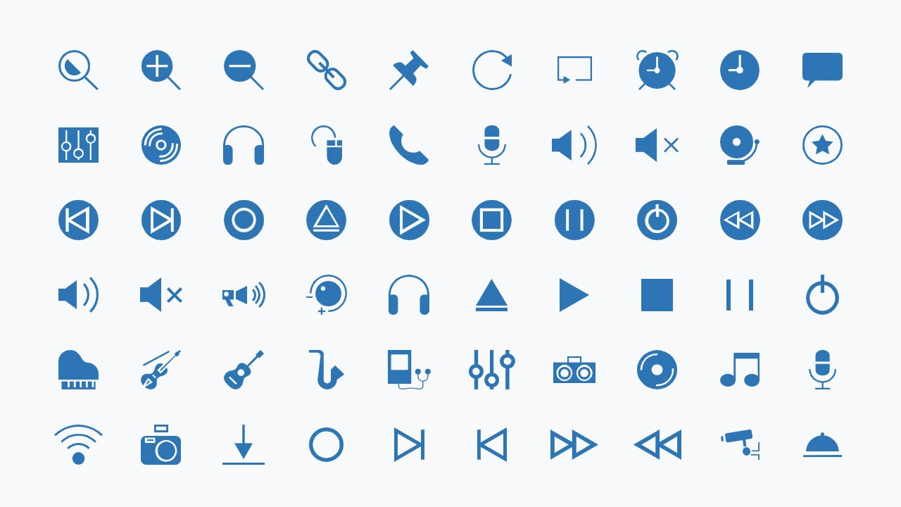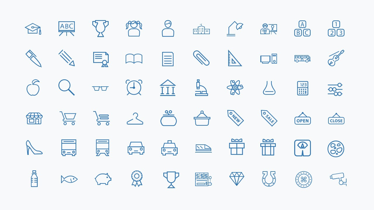 - Universal themes – includes icons for business, media, nature, health, transport, food, weather, and more