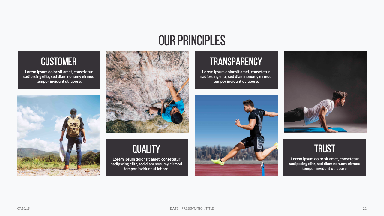 - Recommended fonts: Lato (for text) & Bebas Neue (for titles) – free to download